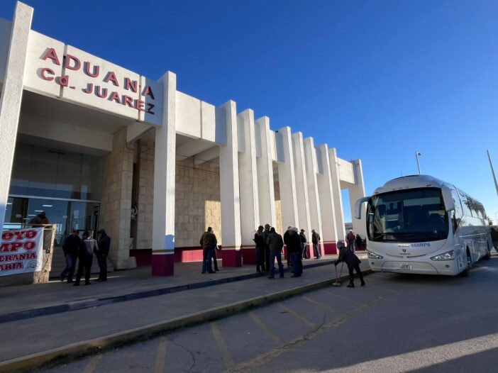 En el exterior de la Aduana de Ciudad Juárez, localizada en El Chamizal, a un lado del Puente Internacional Las Américas, conocido como Puente Libre, el flujo de automovilistas cruzando la frontera se mantenía de manera regular, con presencia de oficiales de vialidad ordenando el tránsito.