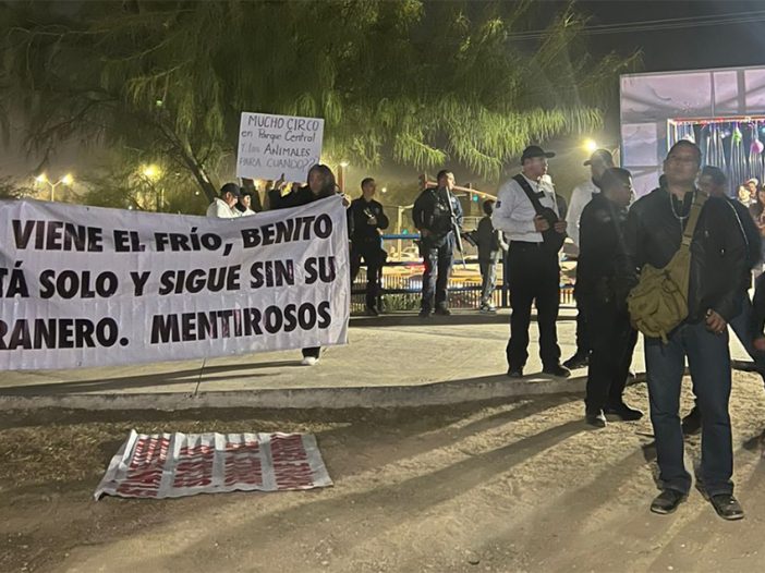 Ana Félix, integrante del movimiento, señaló que, desde la llegada de la jirafa Benito en mayo a Ciudad Juárez han acudido de manera intermitente a realizar protestas, “sin embargo, en esta ocasión fuimos acosados”.
