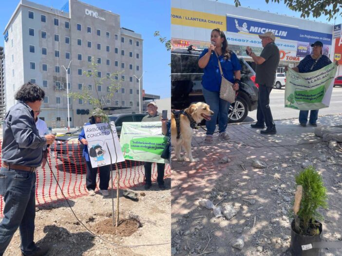 Integrantes de Árboles en Resistencia y del colectivo Frente en Defensa de El Chamizal, realizaron una manifestación en el camellón de la Ejército Nacional, entre Valentín Fuentes y Plutarco Elías Calles, donde la empresa aceptó su responsabilidad y ofreció a los juarenses reparar el daño ecológico que causaron.