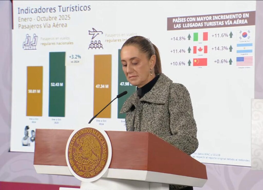 Sheinbaum destacó que, pese a estas advertencias, el flujo de turistas canadienses ha aumentado un 11.4% en lo que va de 2025 en comparación con el año anterior. “Canadá, 11.4 por ciento de incremento en el 2025, y va a seguir aumentando”, agregó.