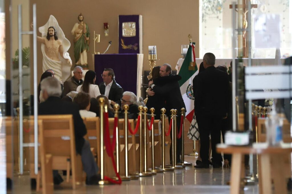 Uno de los sacerdotes recuerda que ya pasan de las cinco de la tarde y hay otro servicio en ese espacio, por lo que invita a desalojar. Hortensia, la esposa, toma la urna entre sus manos y camina lentamente hacia la salida, entre una valla que se forma de manera espontánea. Con ella van los hijos y entre aplausos fuertes abandona la capilla para detenerse en el vestíbulo, donde continúa recibiendo abrazos y condolencias.