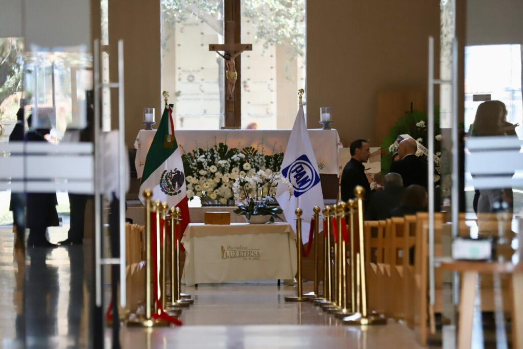 Son las diez de la mañana. En la capilla ya está acomodada la urna de madera, sencilla, sobria. La rodean unos ramos de flores blancas y también las banderas de Acción Nacional y de México. Atrás, solamente nueve coronas grandes, enviadas quizá por quienes no se enteraron de la petición: no mandar flores y en lugar de ellas hacer llegar donativos para la Obra Salesiana. El ambiente es tranquilo, relajado, con discretas charlas en voz baja.