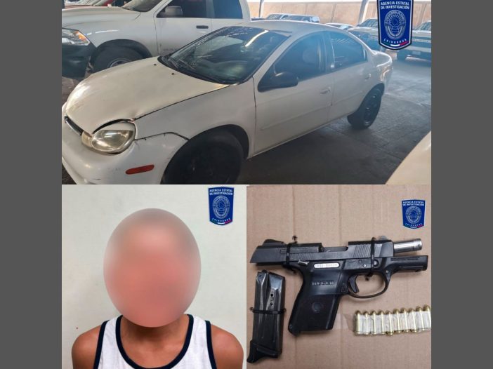 Un adolescente de 16 años de edad fue detenido por elementos de la Agencia Estatal de Investigación adscritos a la Fiscalía de Distrito Zona Norte, al encontrarse en flagrancia por posesión de una pistola.