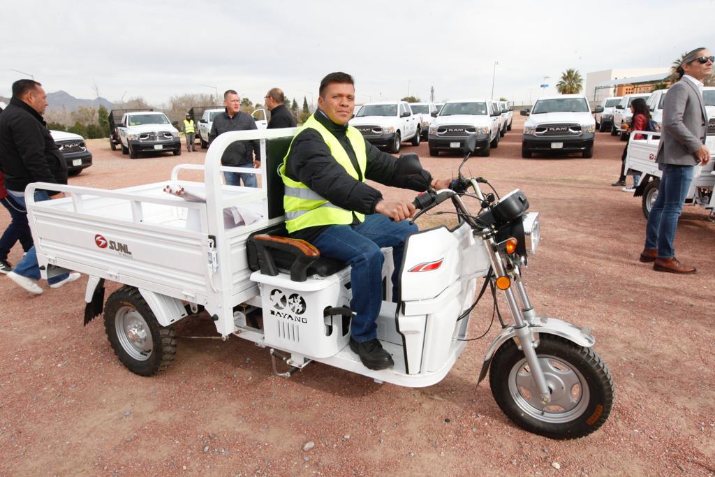 Además, ocho canastillas para la rehabilitación del alumbrado público, dos motonetas y remolques, complementaron esta entrega por parte del presidente municipal Cruz Pérez Cuéllar.