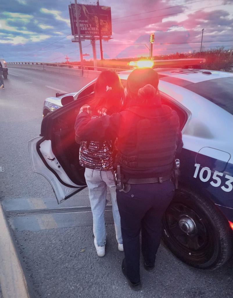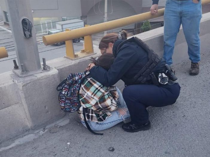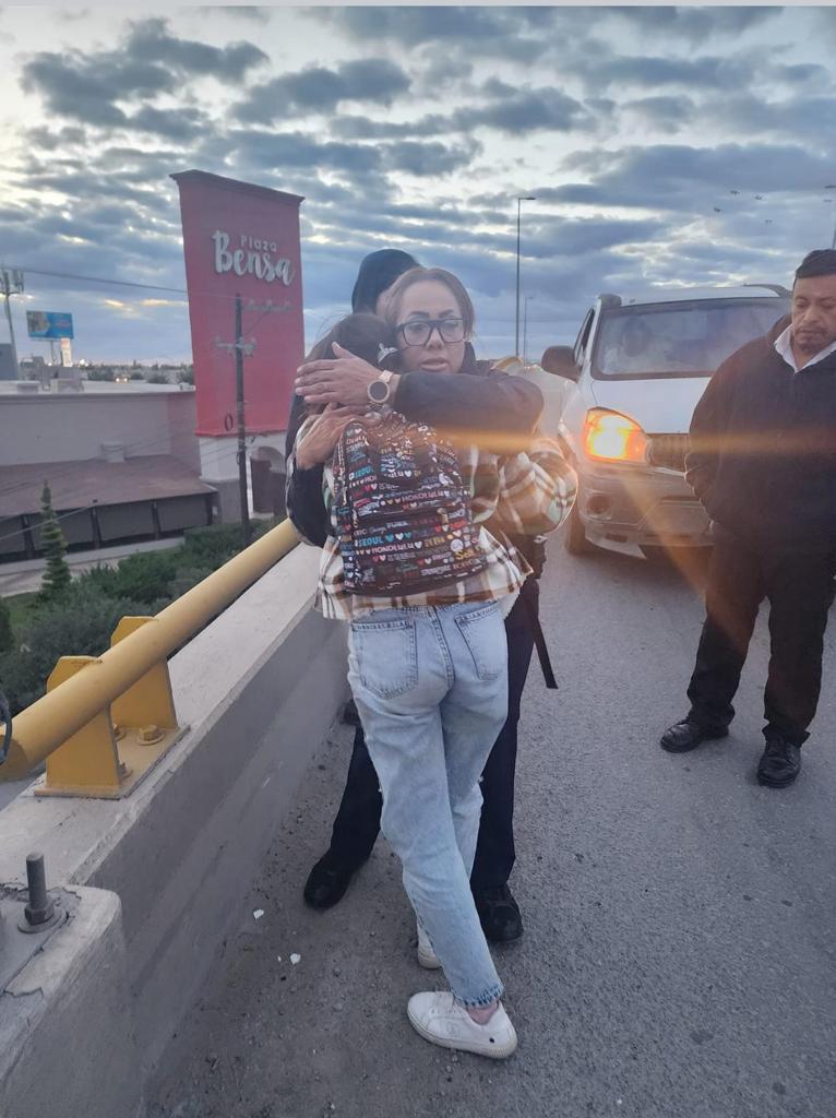 La intervención de la agente vial Fabiola Martínez, a bordo de la unidad 1053, evitó un trágico incidente este día en el puente de la intersección de la avenida Ejército Nacional y bulevar Manuel Gómez Morín, donde una mujer intentaba quitarse la vida.
