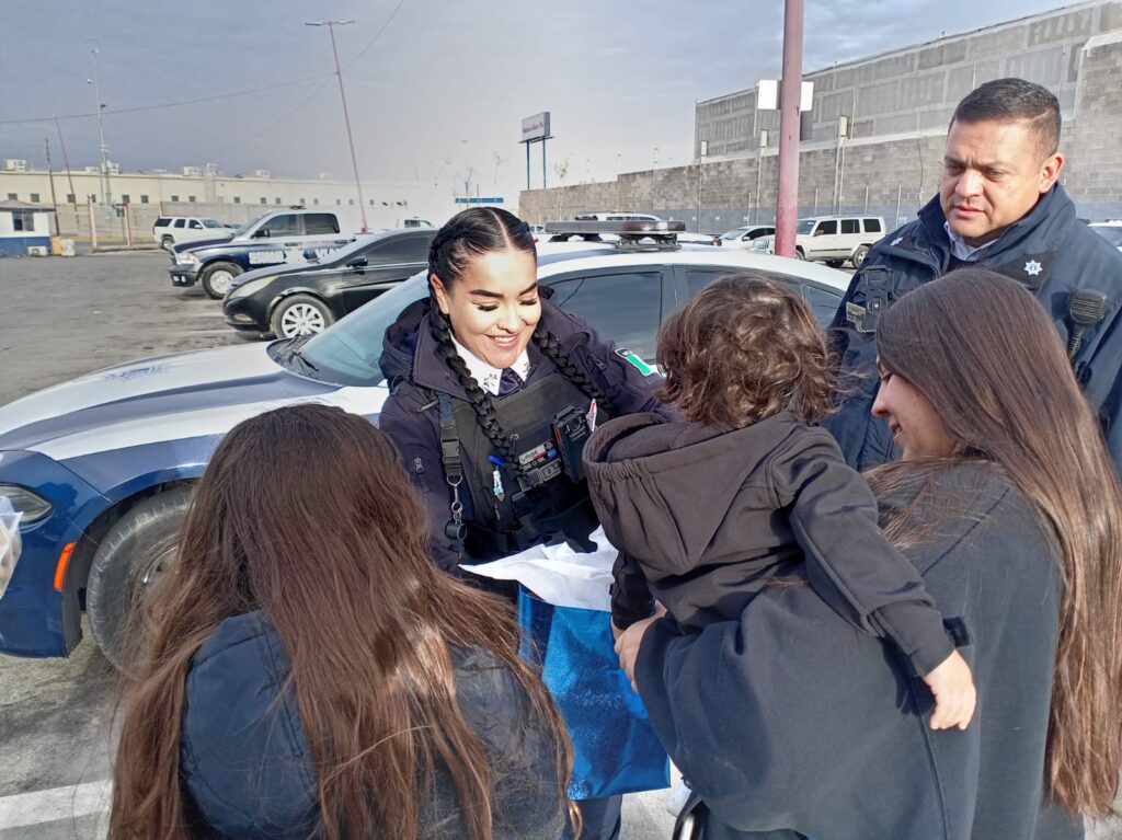 En agradecimiento por la ayuda, la familia Arvilla Ramírez entregó galletas azucaradas a los agentes viales como una muestra de reconocimiento a la labor que realizaron en beneficio de sus integrantes.