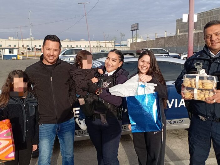 En agradecimiento por la ayuda, la familia Arvilla Ramírez entregó galletas azucaradas a los agentes viales como una muestra de reconocimiento a la labor que realizaron en beneficio de sus integrantes.