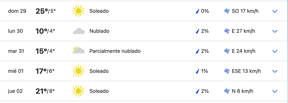 Para el domingo se prevé una máxima de 25 grados centígrados, con una mínima de 5 grados, mientras que el lunes será más frío del tiempo transcurrido en este otoño 2023, con una máxima que sólo alcanzará los 10 grados y con 4 grados como la temperatura más baja.
