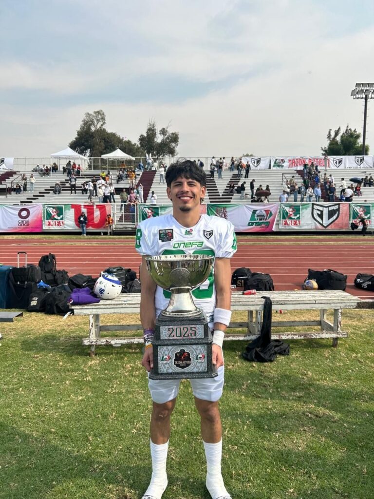 Asegura que en el 2025 terminó su elegibilidad con el equipo universitario y el mes pasado tuvo el Draft de la Liga de Futbol Americano (LFA), donde fue seleccionado por Los Caudillos de Chihuahua.