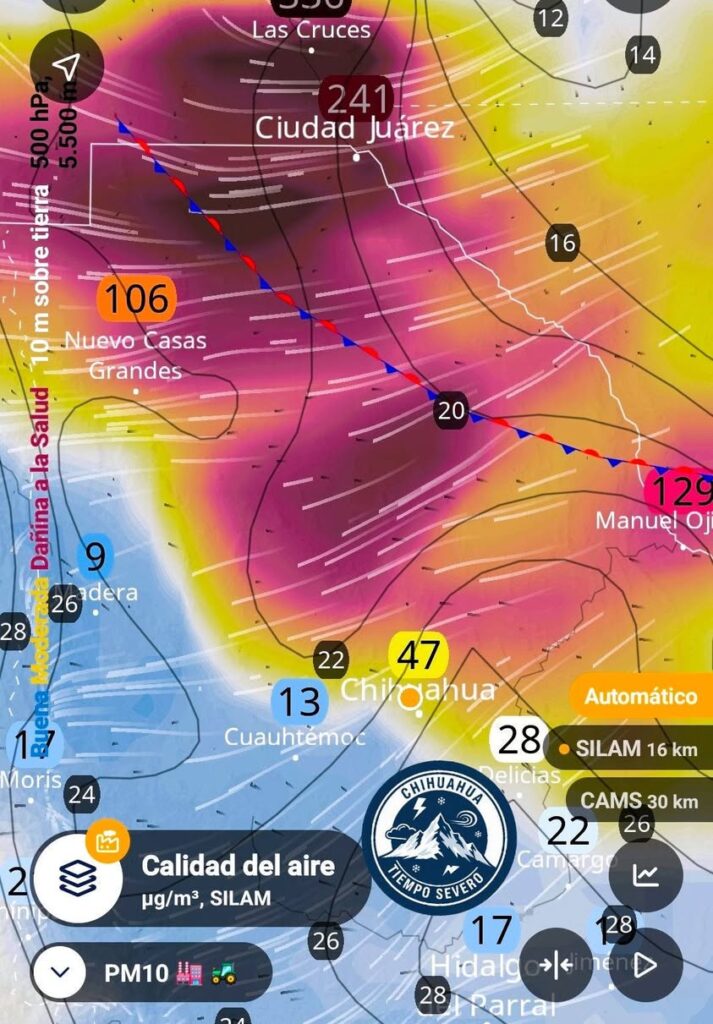 De acuerdo con el análisis de Tiempo Severo Chihuahua, los niveles de partículas en la región pueden dispararse en cuestión de horas, pasando de condiciones aceptables a un ambiente con riesgos para la salud.
