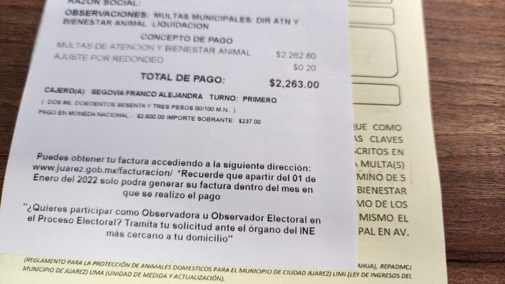 En Samalayuca, el propietario de dos perros recuperó a sus animales tras pagar una multa de 2 mil 263 pesos y presentar sus cartillas de vacunación, argumentando que se le habían escapado.
