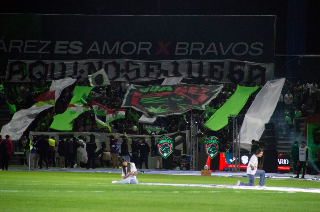 Las banderas, el júbilo y la emoción juarense se transmitió en los primeros minutos del encuentro, los Bravos salieron al abordaje y su ofensiva comenzó a causar estragos rápidamente en la saga del Toluca.