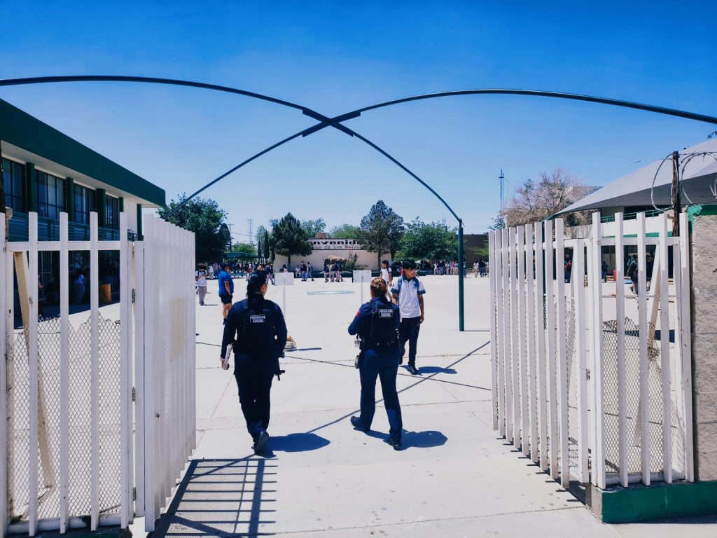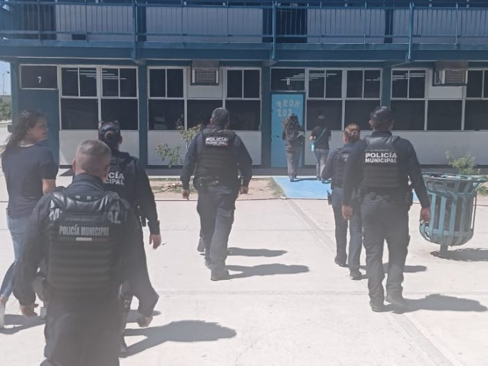 La Secretaría de Seguridad Pública Municipal (SSPM) reforzó las acciones de vigilancia en dos planteles educativos tras recibir denuncias por pintas con mensajes amenazantes que mencionan un supuesto tiroteo.