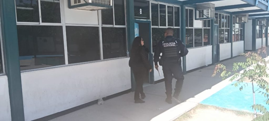 Elementos de la Dirección de Prevención Social de la Policía Municipal atendieron las denuncias realizadas por personal docente de ambos planteles durante este miércoles.