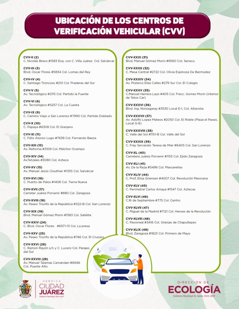 Para más información, los automovilistas pueden llamar a la Dirección de Ecología al 656 689-3908, extensión 100.