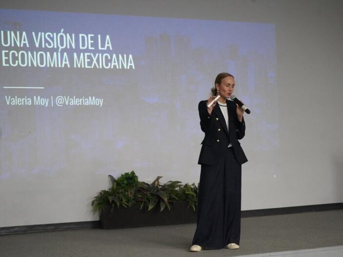 La expositora fue la maestra Valeria Moy, economista y directora general del Instituto Mexicano para la Competitividad (IMCO), quien destacó ante la comunidad universitaria la importancia de comprender la economía, tanto en su dimensión micro, como macroeconómica.