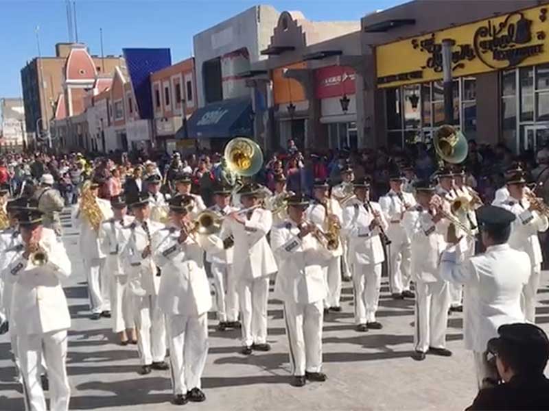 Realizan desfile en el primer cuadro de la ciudad y entonan el Huapango de Moncayo al instalarse en un templete especial