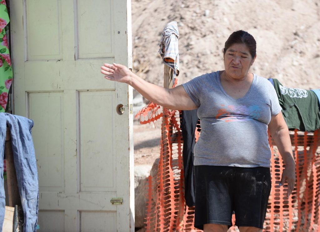 «Todos estamos bien chuecos, pero yo fui a Asentamientos Humanos a ver si había una casita por ahí; nada, puras vueltas», dice doña Guadalupe mientras que espanta las moscas de su cortina en la puerta y agrega: «Pues sí, andamos a la buena de Dios, no hay de otra».