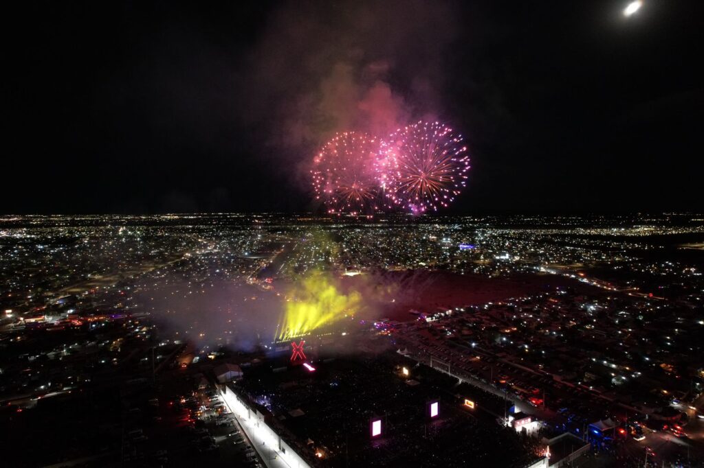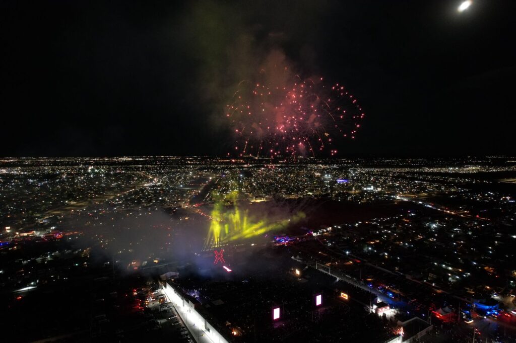 Como acto final, el Gobierno Municipal despidió a los asistentes con un show de láser y pirotecnia en el cielo juarense.