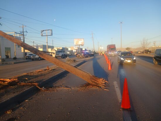 Caos vial en Talamás Camandari por derribo de poste de CFE