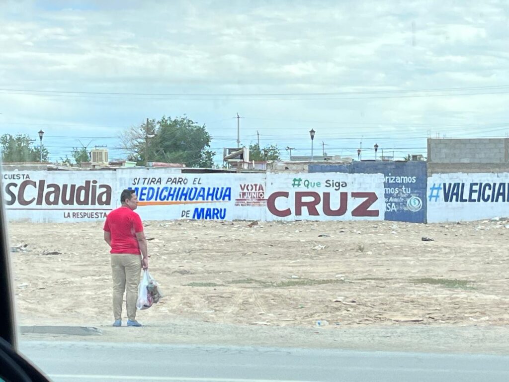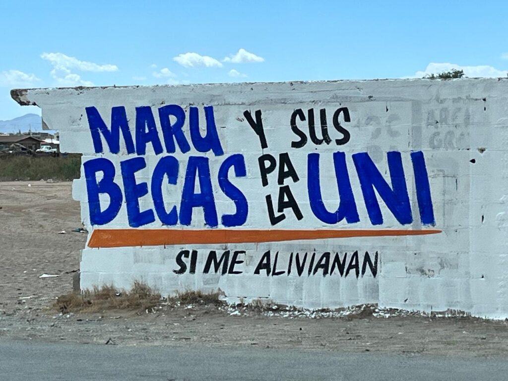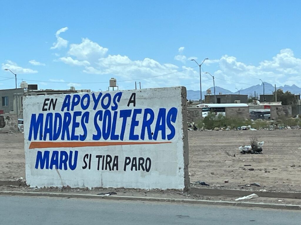 Algunas de las leyendas escritas son: “Maru y sus becas pa’ la uni, sí me alivianan”; “En apoyo a madres solteras, Maru si tira paro”; “Si tira paro el MediChihuahua de Maru”; y “Maru, al cien con el nuevo drenaje del Norzagaray”.