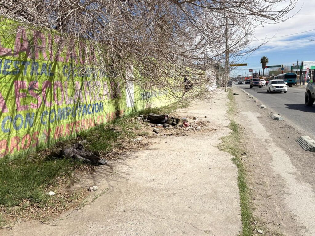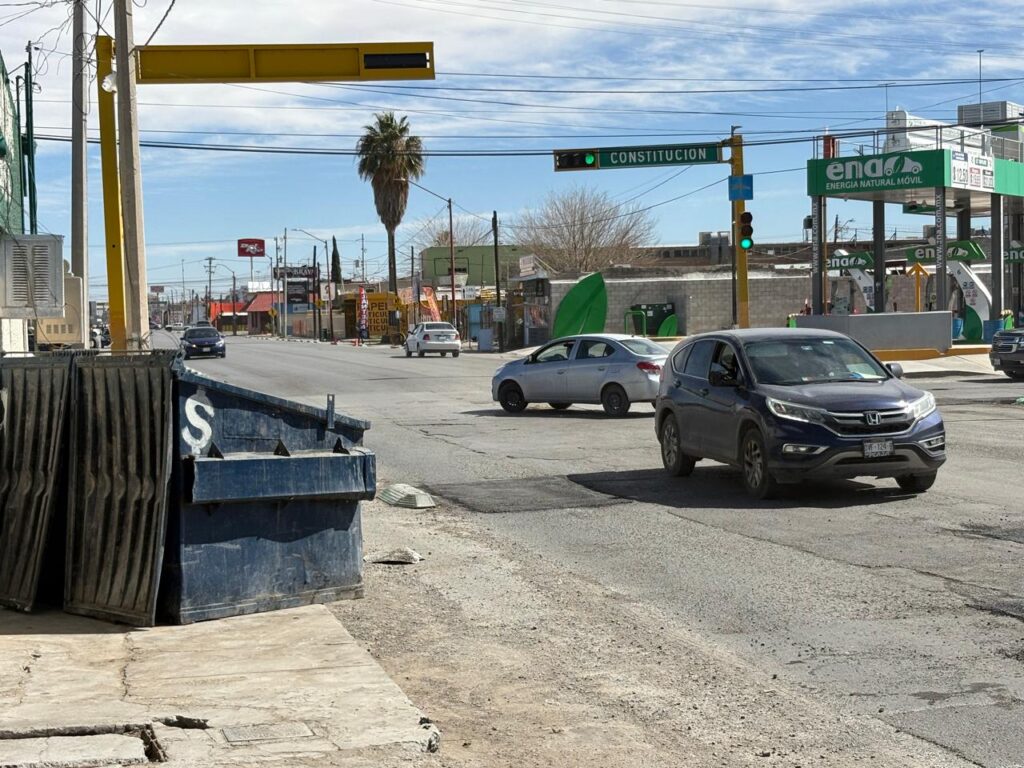 Aunque recientemente se reparó una sección de la vialidad, las cuadrillas no atendieron la limpieza ni el mantenimiento de la ciclovía. En la esquina de Constitución e Insurgentes, en la colonia El Barreal, el contenedor de basura de un refugio para personas mayores obliga a los peatones a caminar por la avenida.