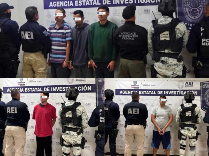 La Secretaría de Seguridad Pública del Estado (SSPE) informó que brindó apoyo táctico y acompañamiento a la Fiscalía General del Estado en el operativo que llevó a la detención d ellos sujetos.