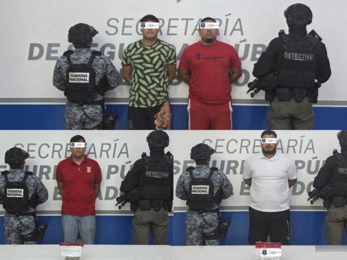 Los cuatro detenidos, así como la droga y el vehículo asegurado, quedaron a disposición de las autoridades correspondientes para continuar con las investigaciones procedentes, se informó.