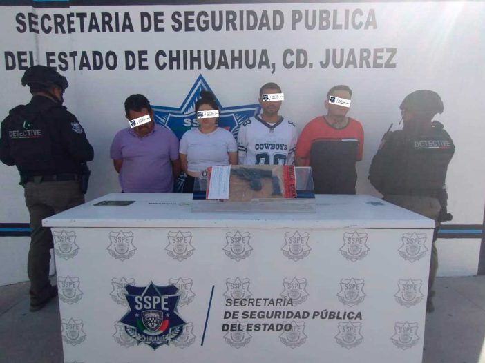 Tres hombres y una mujer fueron arrestados durante la tarde del lunes por elementos de la Secretaría de Seguridad Pública del Estado (SSPE), luego de que se reportara a los números de emergencia que desde una vivienda se escuchaban gritos de personas pidiendo auxilio en la colonia Las Montañas.