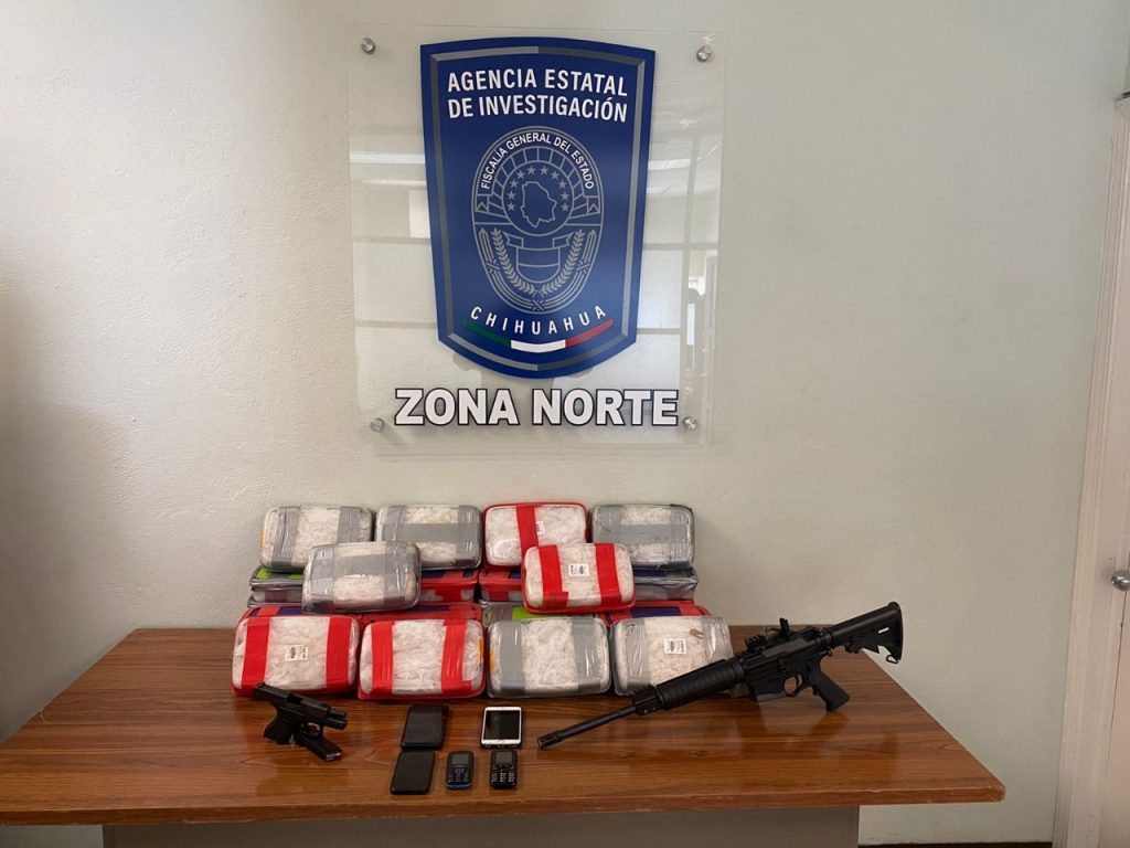 Con 30 kilogramos de la droga denominada cristal y dos armas de fuego de uso restringido, fueron detenidos un par de sujetos en la colonia Hacienda de los Nogales.