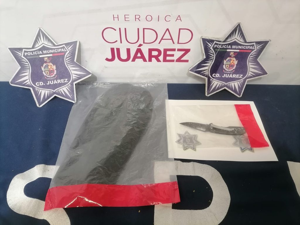 Con los datos obtenidos se implementaron acciones de búsqueda, localizando metros más adelante dos sujetos que reunían las características proporcionadas, por lo que fueron abordados por protocolos de seguridad y al realizarles una inspección preventiva se les localizó un arma blanca y un pasamontaña, procediendo con su detención, agrega el reporte.