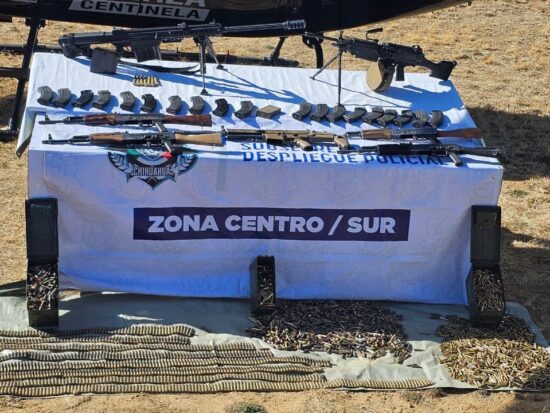 En el lugar se aseguraron dos fusiles AK-47 calibre 7.62×39 mm, seis cargadores con capacidad de 30 cartuchos cada uno, 171 cartuchos útiles calibre 7.62×39 mm y un chaleco táctico color negro, añade el parte informativo.