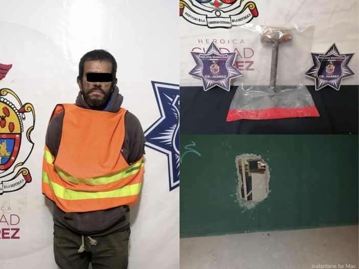 Elementos de la Secretaría de Seguridad Pública Municipal arrestaron a Eduardo C. J., cuando hacía un agujero en la pared en un establecimiento localizado en la colonia Jardines del Aeropuerto.