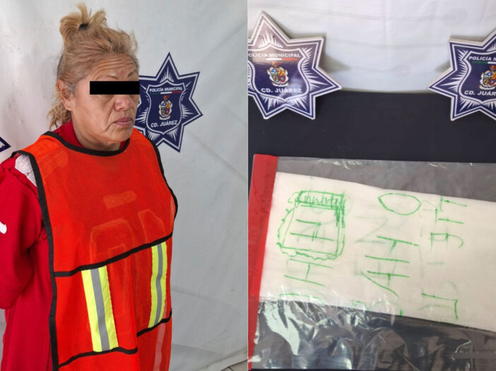 Agentes de la Secretaría de Seguridad Pública Municipal arrestaron a Dora Luz N. M., luego de que fuera identificada como la persona que colocó un mensaje con amenazas contra un establecimiento.