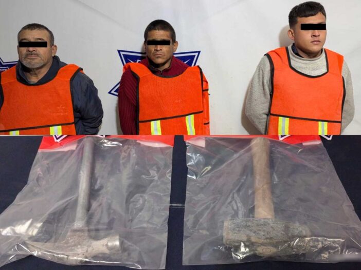 Razón por la cual fueron detenidos quienes dijeron llamarse Javier M. M. de 36 años, Ángel Guillermo H. A. de 24 años y Pedro S. R. de 58 años, mismos a quienes se les aseguró dos instrumentos de metal pesado con los cuales cometieron el delito.