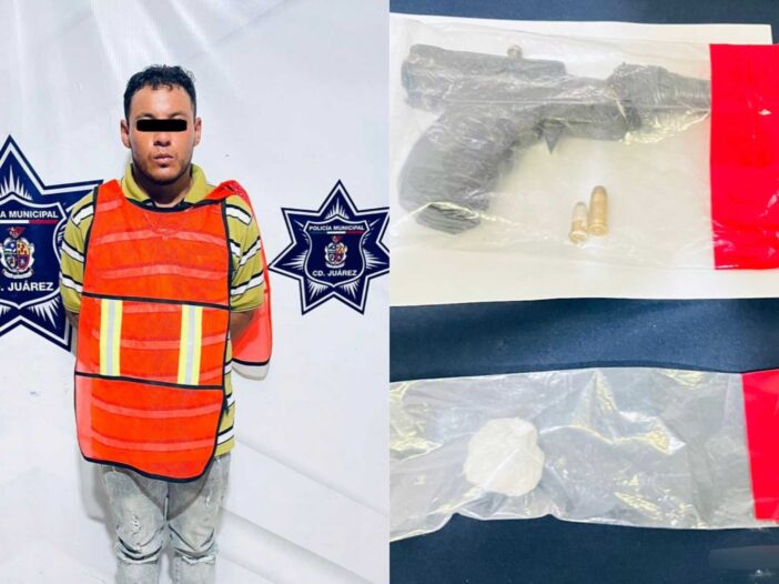 Elementos de la Secretaría de Seguridad Pública Municipal arrestaron a Adán M. C., después de que le fuera localizada un arma hechiza y droga de la conocida como cristal.