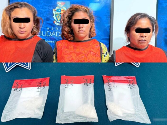 Elementos de la Secretaría de Seguridad Pública Municipal arrestaron Yajaira Carilina C. O., Esmeralda R. V. y Gabriela Jazmín L. M., después de que cometieran una falta administrativa y al ser sometidas a una inspección de seguridad, se les encontrara en posesión de la droga conocida como cristal.