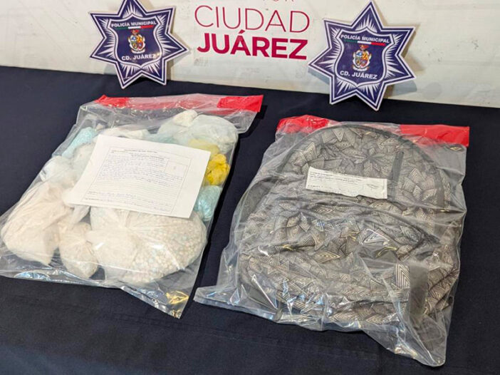 Sin embargo, los elementos de la SSPM lograron darle alcance para hacerle una inspección preventiva, localizando dentro de una mochila que llevaba consigo 20 bolsas de plástico con pastillas, posiblemente fabricadas con fentanilo.