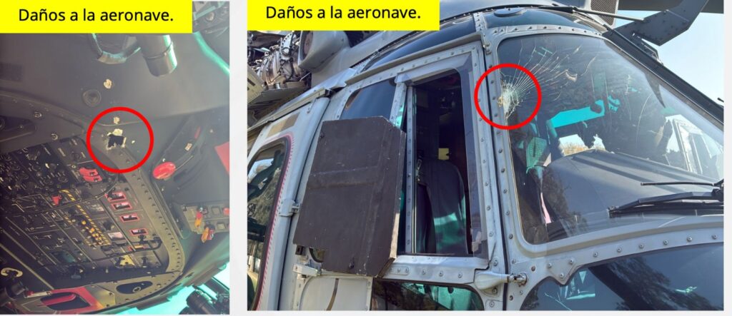 El enfrentamiento escaló rápidamente. Los delincuentes respondieron con armas de alto poder y lograron impactar un helicóptero militar, que tuvo que realizar un aterrizaje de emergencia para evitar una tragedia mayor.