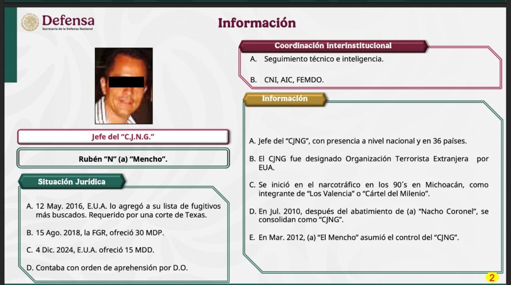 La operación comenzó en silencio, lejos del terreno. Inteligencia Militar Central detectó primero un movimiento clave: un hombre de confianza de una de las parejas sentimentales de Nemesio Oseguera Cervantes, alias El Mencho, la trasladó hasta Tapalpa, Jalisco.