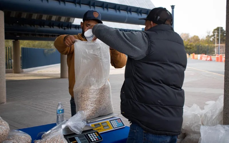 El frijol que se comercializa desde este día proviene de productores de los municipios de Cusihuiriachi, Namiquipa y Cuauhtémoc, así las familias fronterizas podrán tener acceso a alimentos de origen local y, a la vez, fortalecer la cadena de valor del campo.