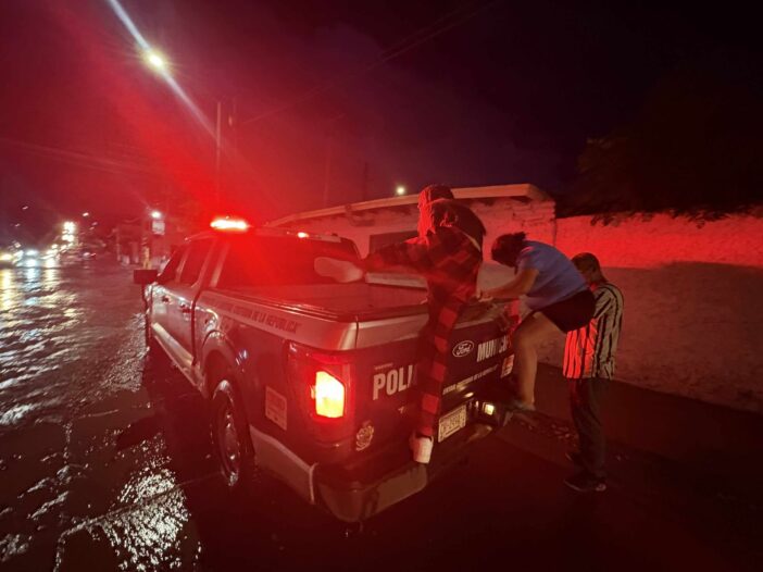 Destacaron que, en la colonia Barrio Alto, los agentes apoyaron al rescate de una familia que se había quedado varada en su automóvil y que, por la fuerza del agua, corrían el riesgo de ser arrastrados por la corriente.