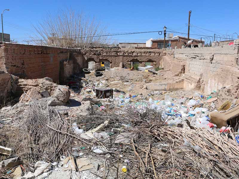 El panorama que brinda un baldío de la calle Mercurio, entre Gardenias y Azucenas, es clara muestra del deplorable estado actual del centro de Juárez.
