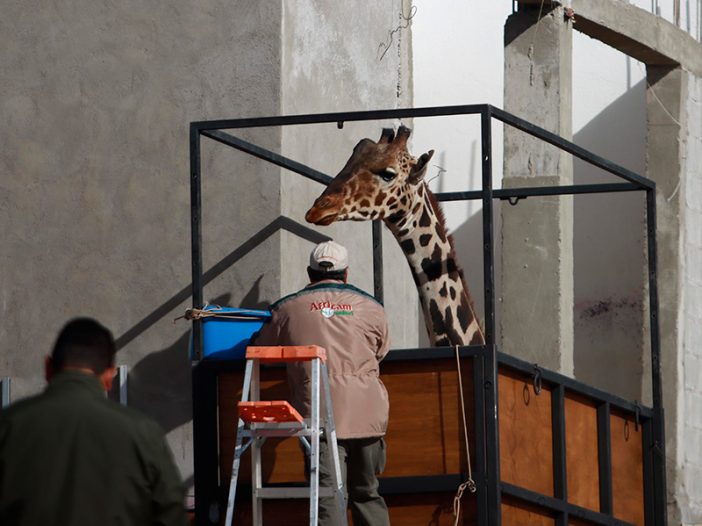 Depende de Benito cuándo será llevado a Africam Safari en Puebla, de que se sienta seguro, que se acostumbre y no sienta como amenaza el subir al contenedor en el que la jirafa hará el viaje.