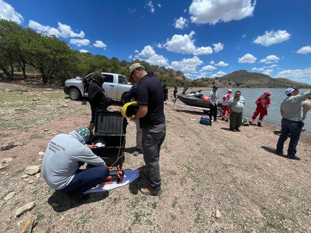 Posteriormente se llevó a cabo una inspección del fondo con el apoyo de un dron acuático, con el que se descartó la presencia de algún indicio que pudieran ser de interés criminalístico.