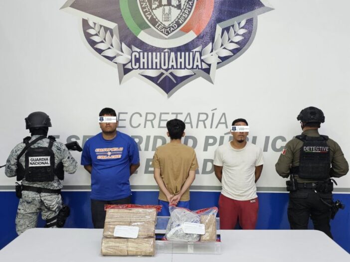 Dos hombres y un adolescente que llevaban a cabo una transacción con más de tres kilogramos de marihuana, fueron arrestados, luego de que la Secretaría de Seguridad Pública del Estado (SSPE), a través de la Subsecretaría de Estado Mayor, los encontrara en flagrancia.