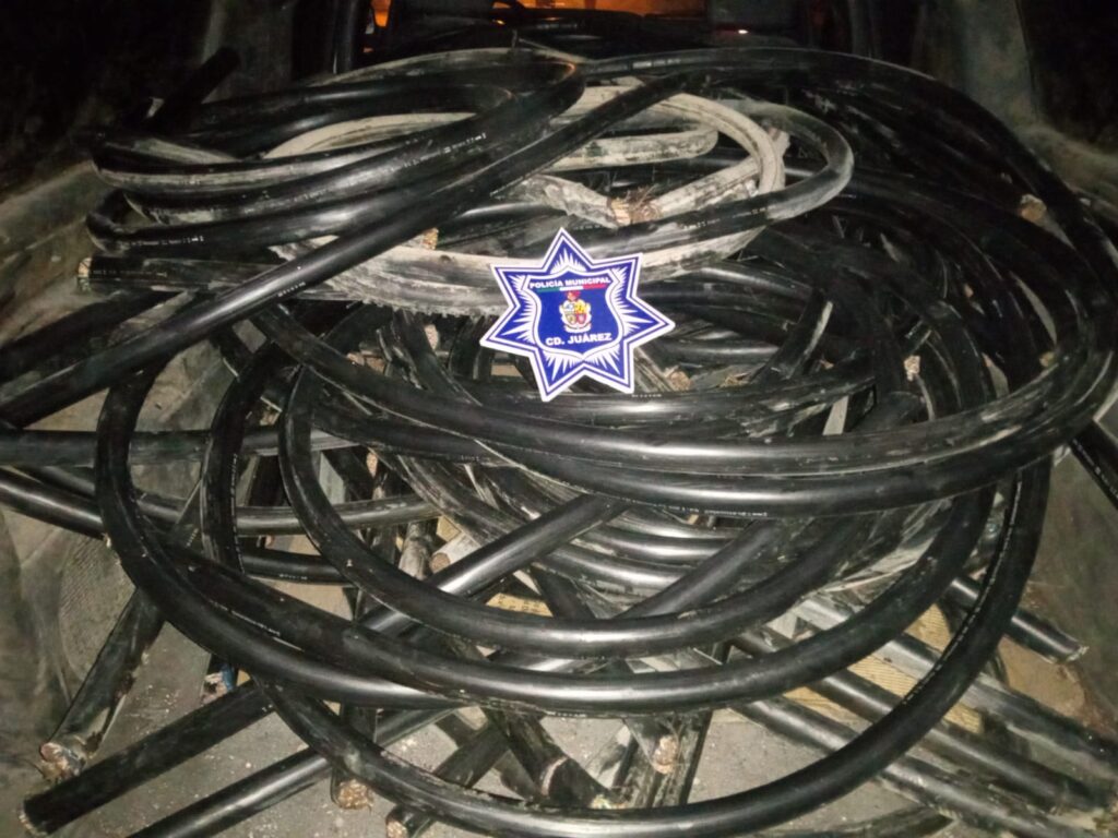 Al acudir al lugar, los oficiales sorprendieron a varios sujetos que vestían chalecos de seguridad que ya habían cortado en pedazos varios metros de cable, propiedad de la empresa afectada.