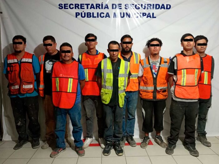 Elementos de la Secretaría de Seguridad Pública Municipal arrestaron a nueve sujetos a quienes se les acusa por robo de cableado en la colonia Mariano Escobedo.