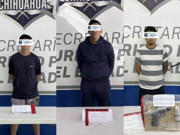 Agentes de la Secretaría de Seguridad Pública del Estado (SSPE) detuvieron a tres hombres por delitos contra la salud, violación a la Ley Federal de Armas de Fuego y Explosivos, y su probable participación en un homicidio cometido el pasado 4 de abril en esta frontera.