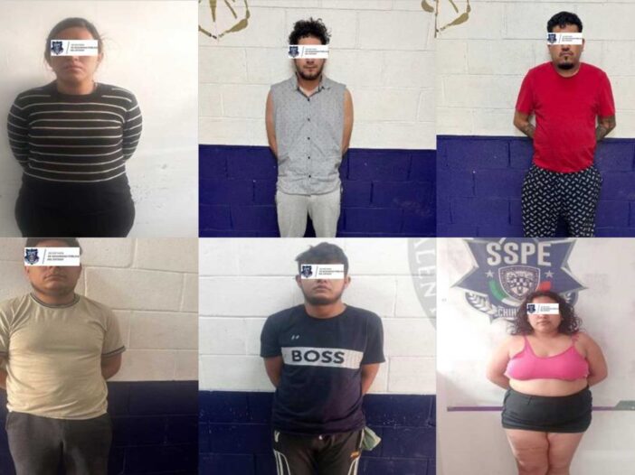 Una vez que los agentes arribaron, detuvieron en flagrancia a Miguel Ángel M.S, Marco Tulio P. M., Henrry Geovanny L. L., Joana Q., Alejandro U. R. y Roxana Janeth A. U., quienes adoptaron una actitud evasiva al notar la presencia policial.